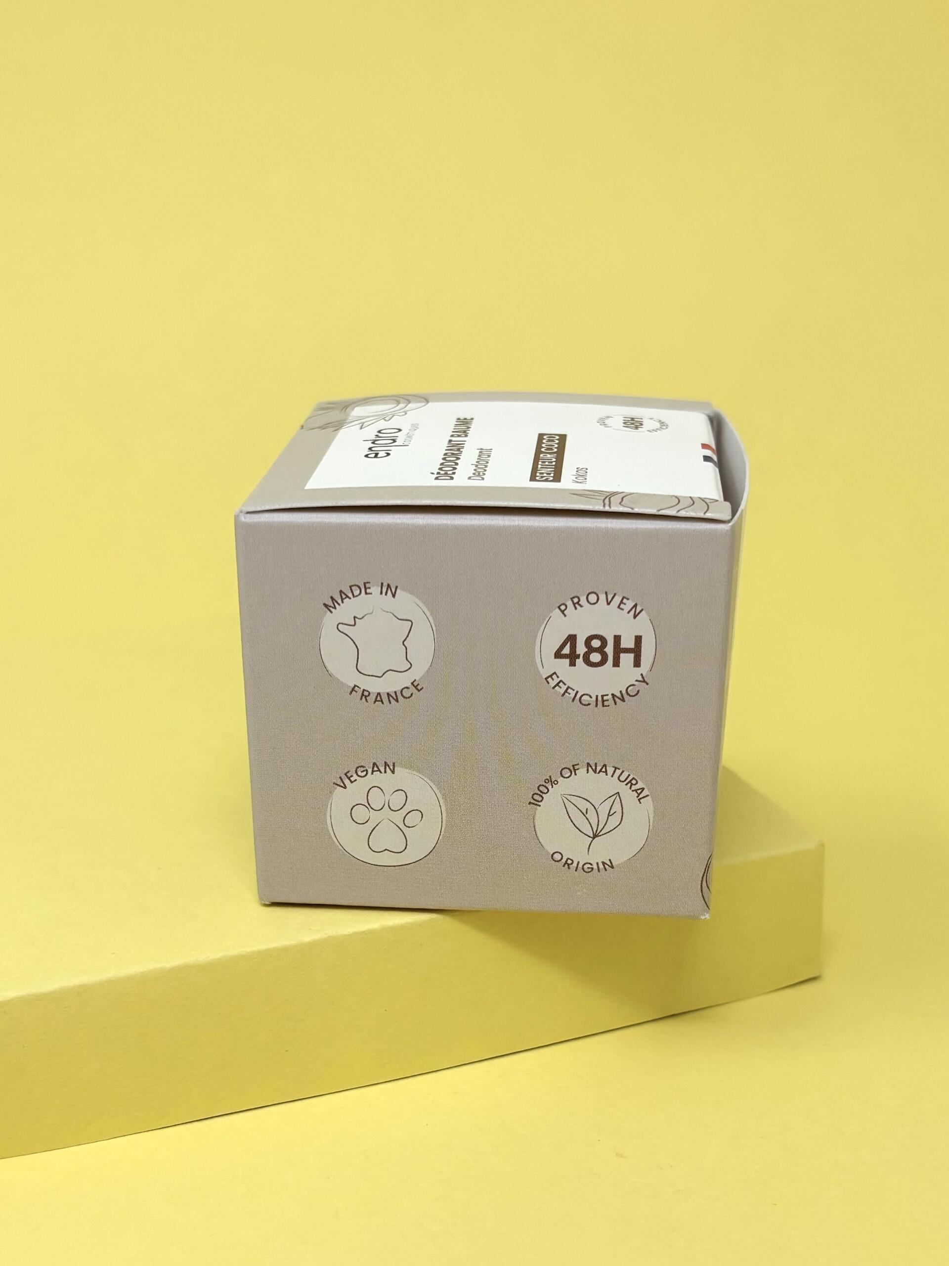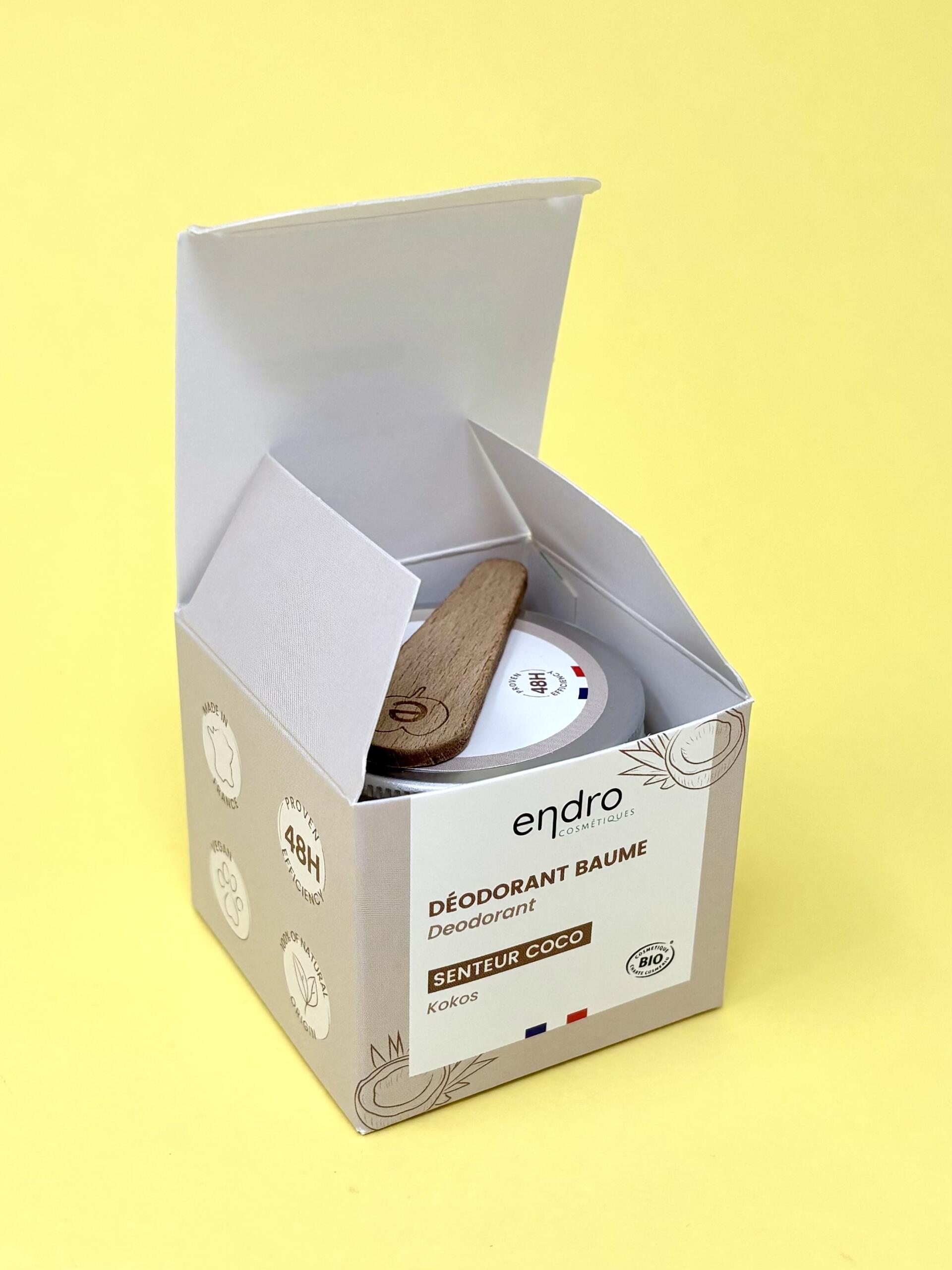 Sa texture fondante en baume va neutraliser les bactéries responsables des mauvaises odeurs sans bloquer le processus de transpiration. Comme il ne possède pas d’huile essentielle, il est parfaitement adapté aux femmes enceintes et aux jeunes mamans. Efficacité 48H ! Livré avec sa spatule en bois pour prélever le produit. Application au doigt. Durée d’utilisation moyenne : 2 à 3 mois. Application le matin, sur peau propre et sèche.