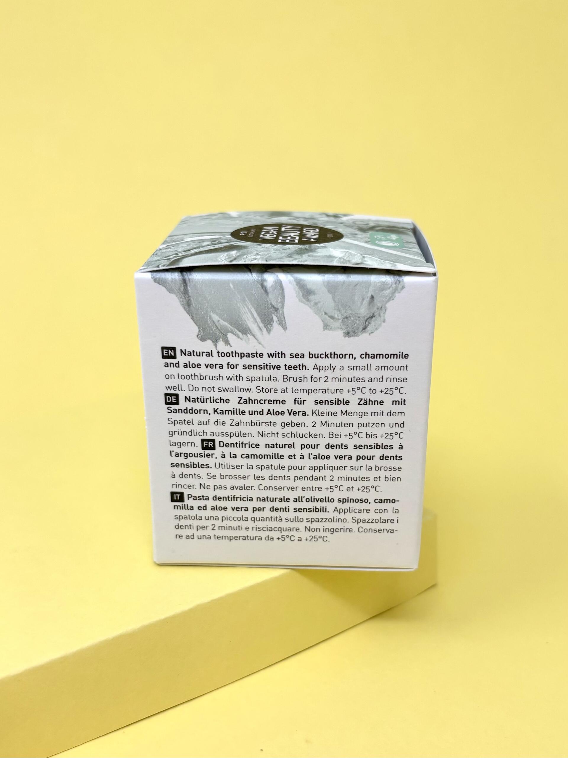 Enrichi en argousier et camomille, ce dentifrice fortifie les dents, les protège des caries et apaise les gencives irritées, assurant ainsi une santé bucco-dentaire optimale. Doux et sans fluor, il est idéal pour les bouches sensibles, renforçant les dents tout en préservant leur santé. Conditionné dans un pot en verre recyclable et respectueux de l'environnement, il vous aide à adopter une routine zéro déchet. Certifié et cruelty-free, ce dentifrice est fabriqué en Allemagne, naturel et respectueux de l’environnement.