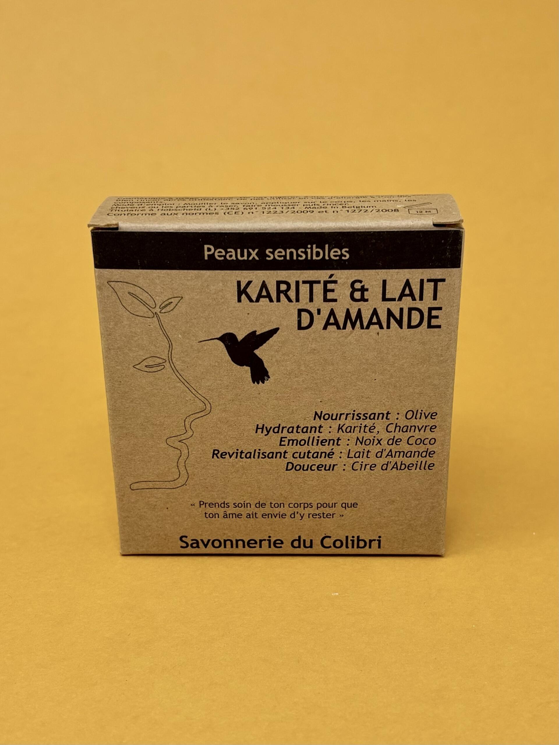 Savon artisanal luxembourgeois au karité et lait d'amande, hydratant et nourrissant, idéal pour les enfants et femmes enceintes.