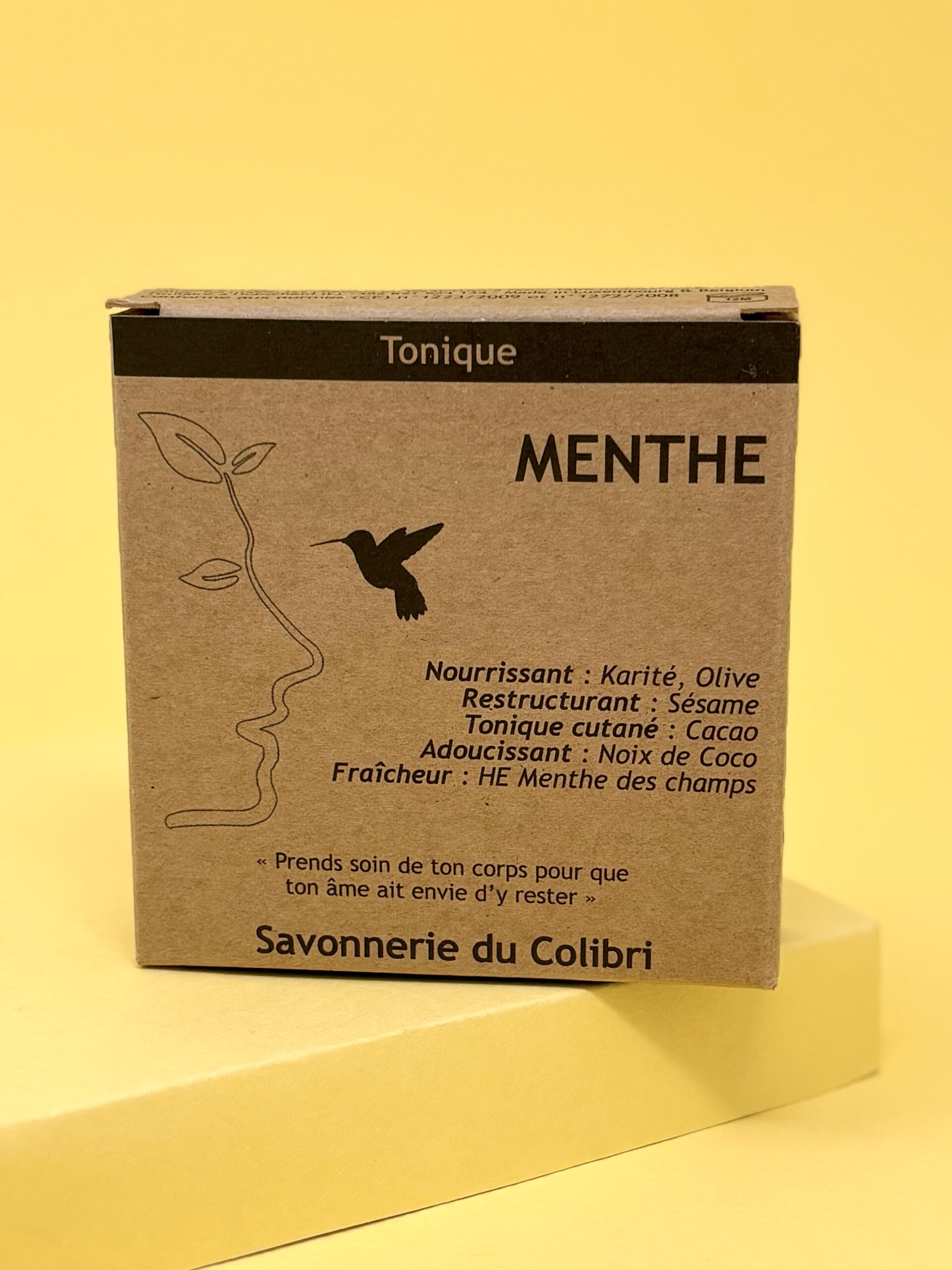 Savon artisanal luxembourgeois, 100 % naturel, à la menthe rafraîchissante et à l'huile de sésame pour une peau nettoyée en douceur et une sensation de fraîcheur.