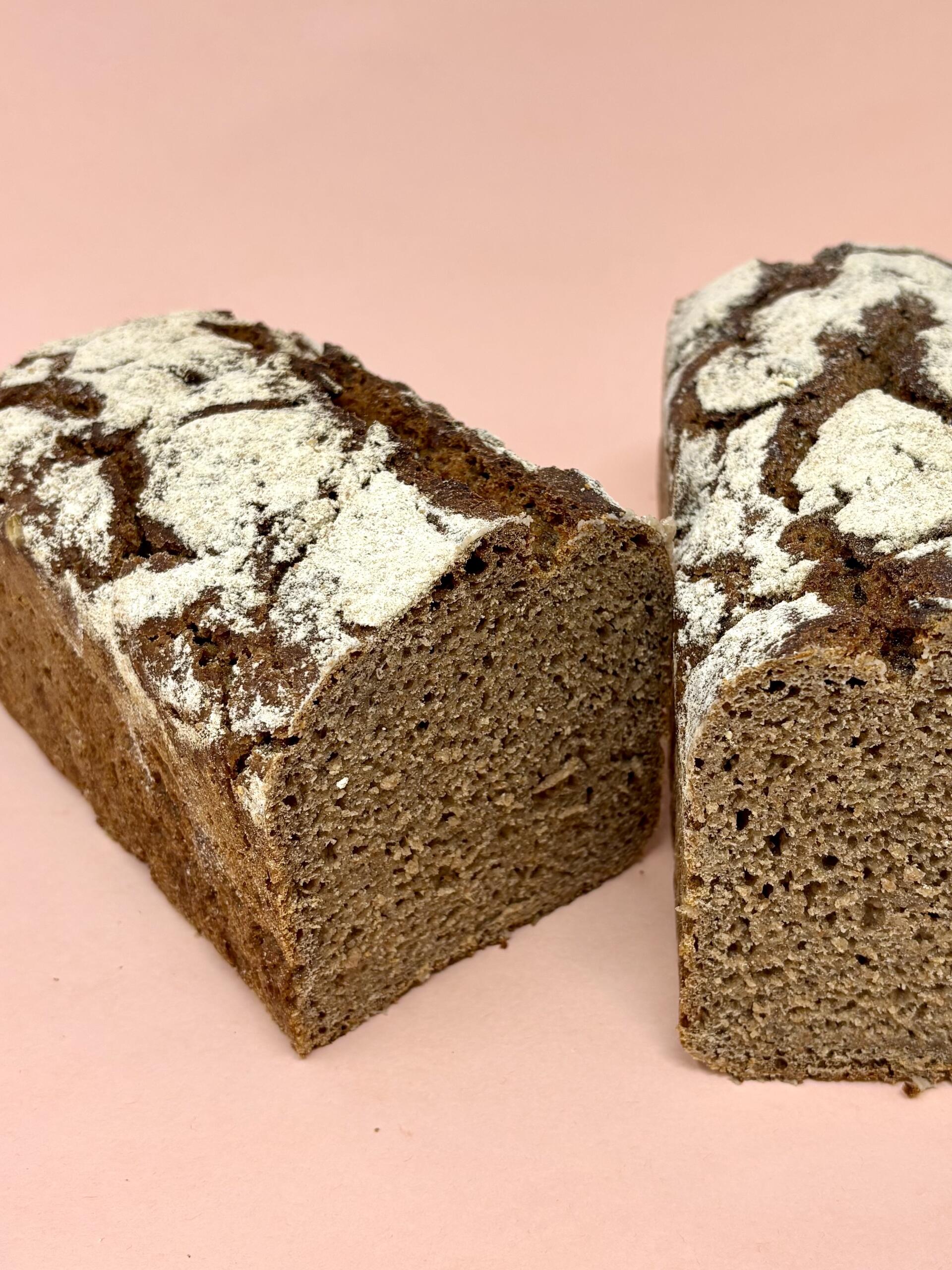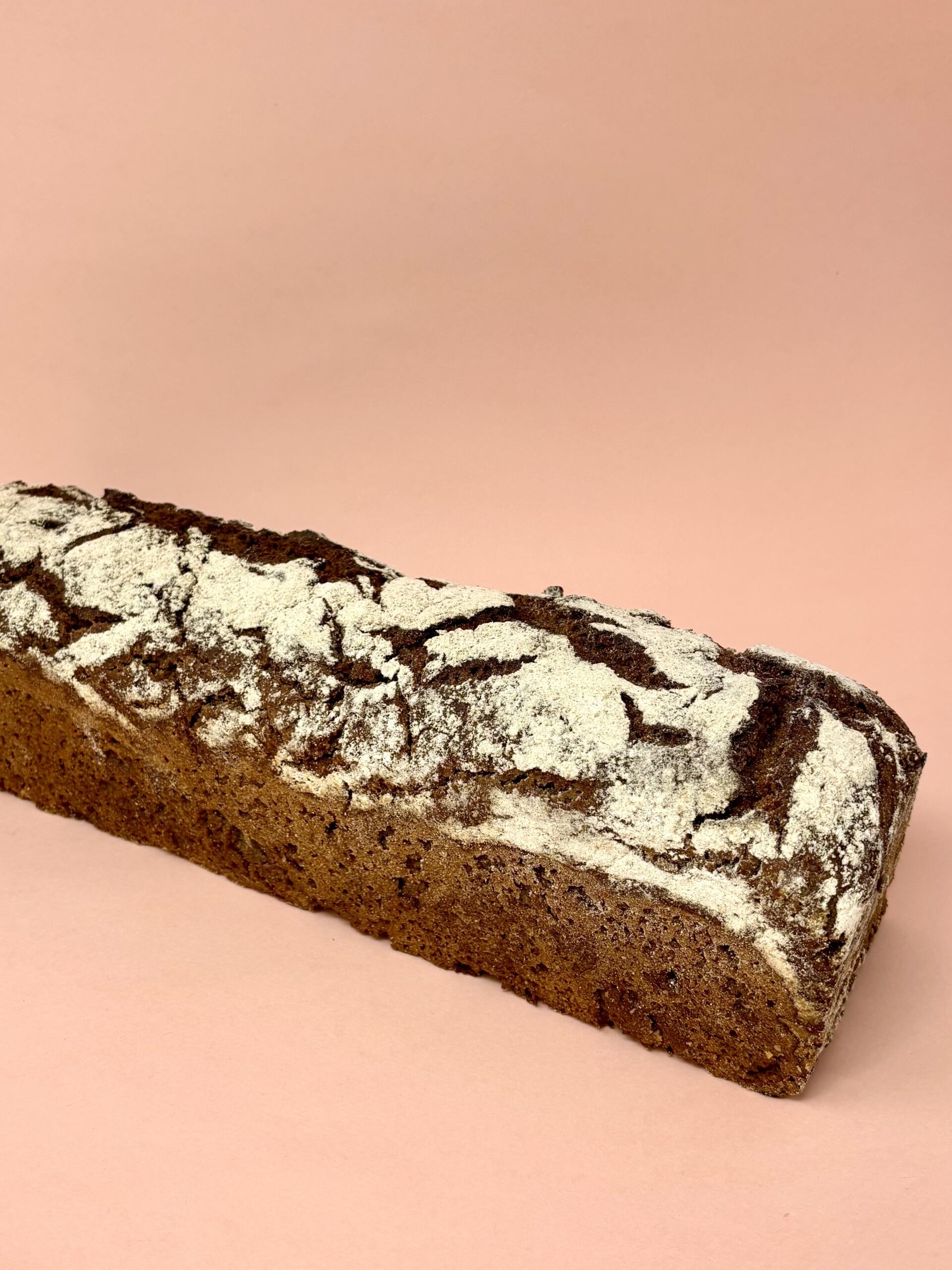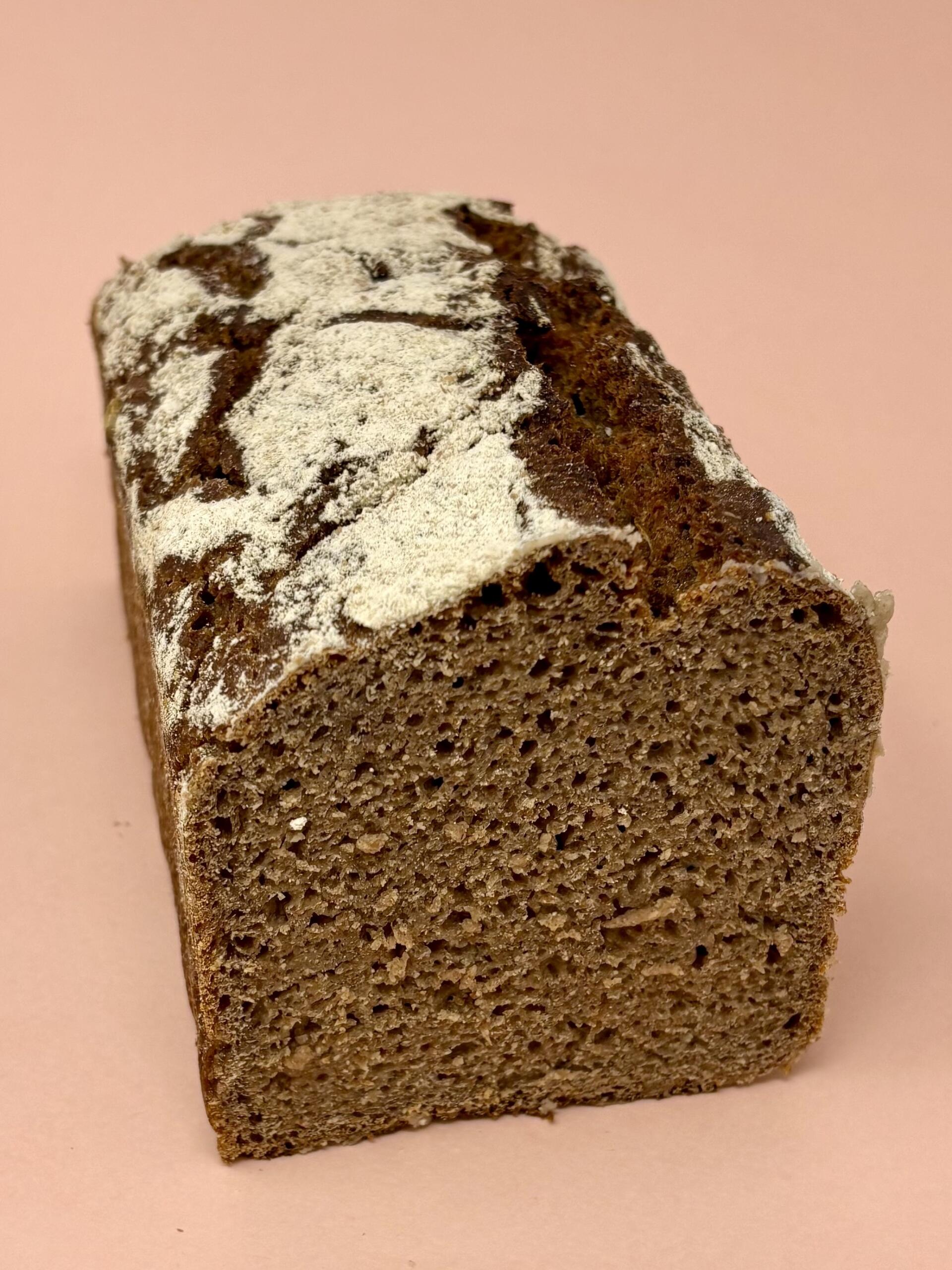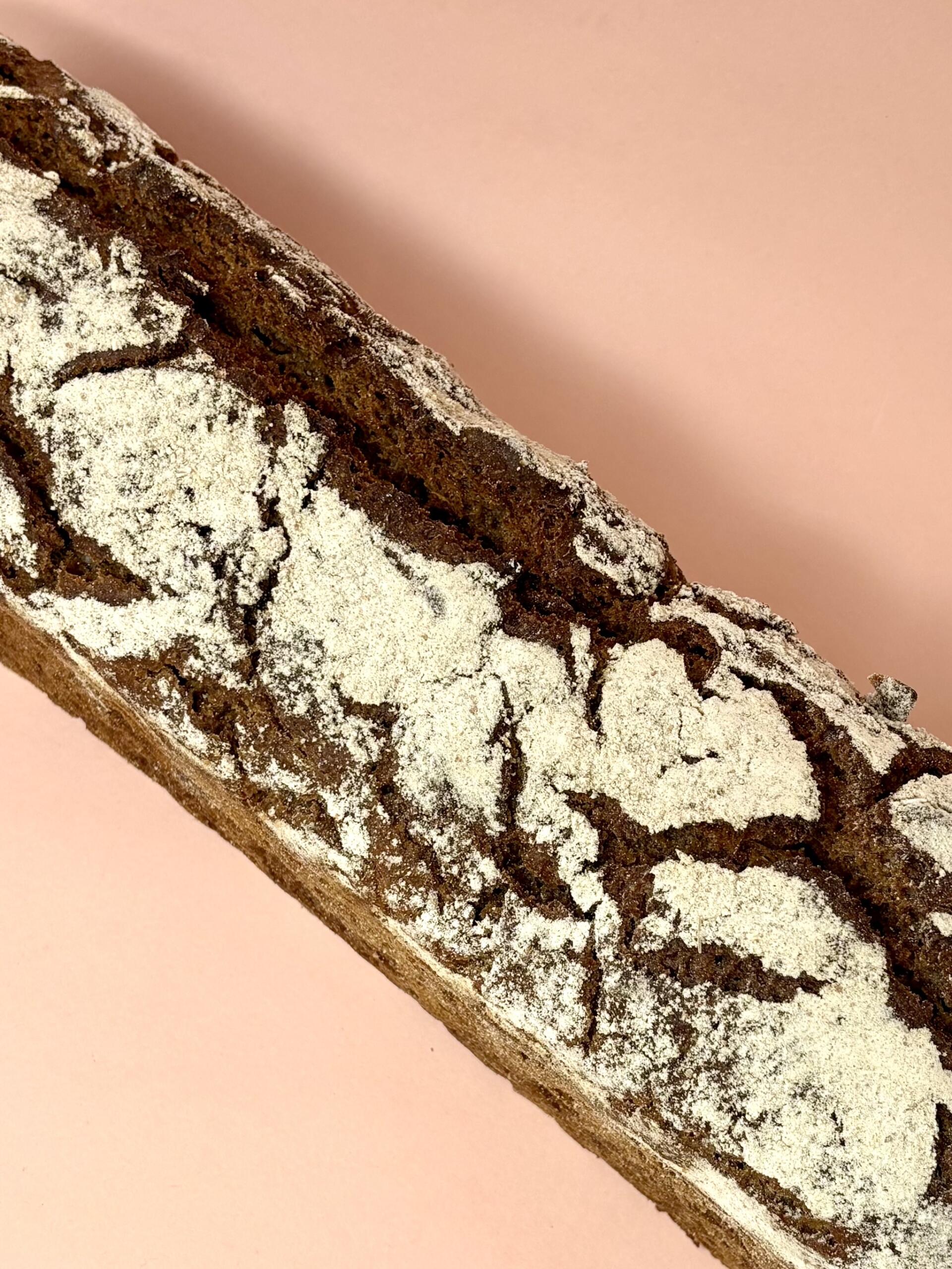 Pain 100 % seigle intégral au pur levain naturel, au goût typé et dense.