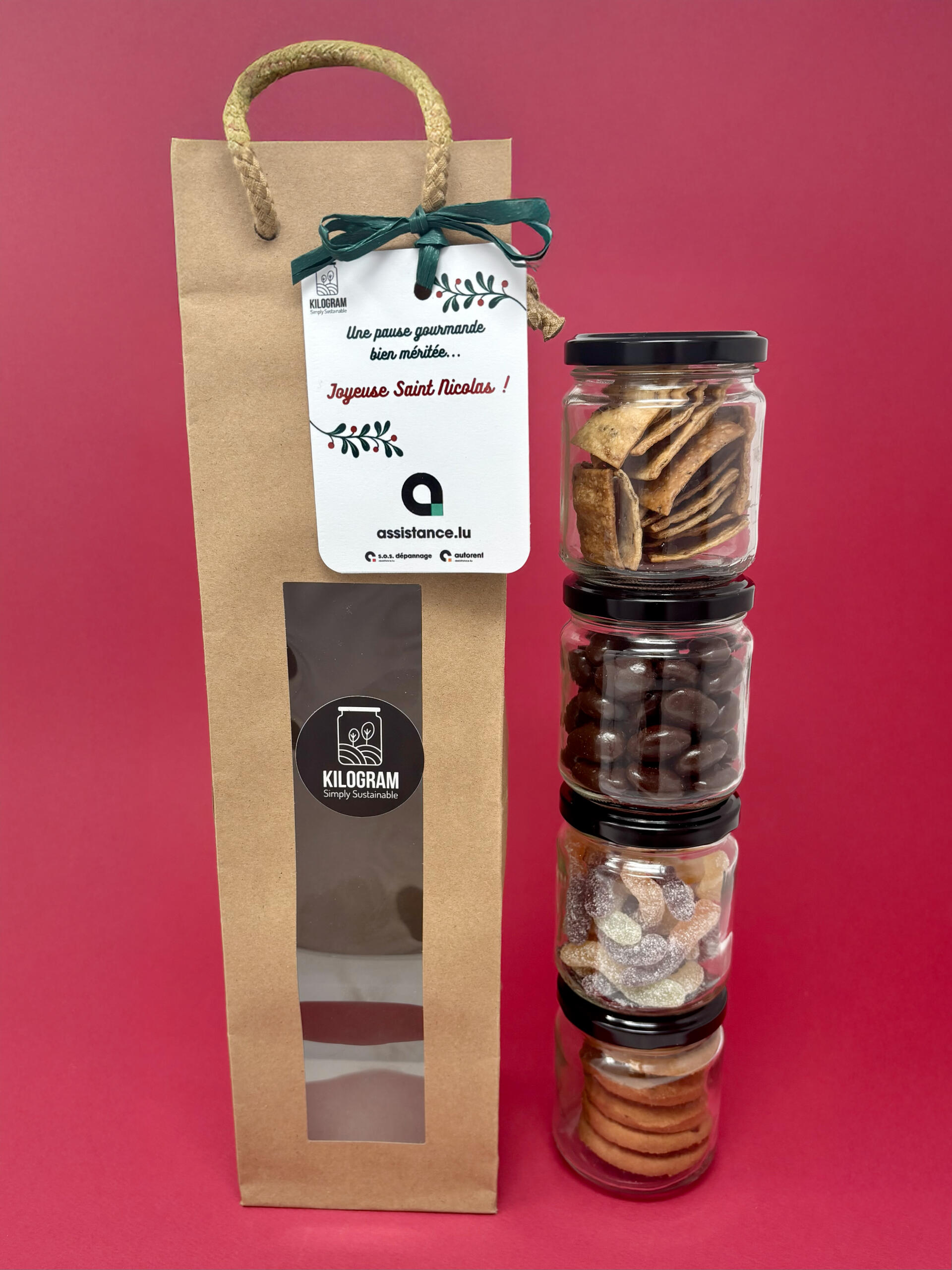Ce sachet cadeau surprise réunit une sélection de gourmandises salées et sucrées pour un plaisir varié et gourmand. Chaque sachet est unique et composé selon les disponibilités, avec des produits choisis pour leur qualité et leur goût. Idéal pour offrir ou se faire plaisir, sans se tromper. POSSIBILITE DE L'AVOIR EN VERSION VEGAN ET/OU SANS GLUTEN SUR DEMANDE.