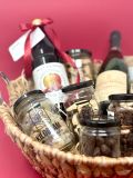 Un panier cadeau surprise généreux, mêlant gourmandises salées et sucrées pour un moment de dégustation convivial et savoureux.