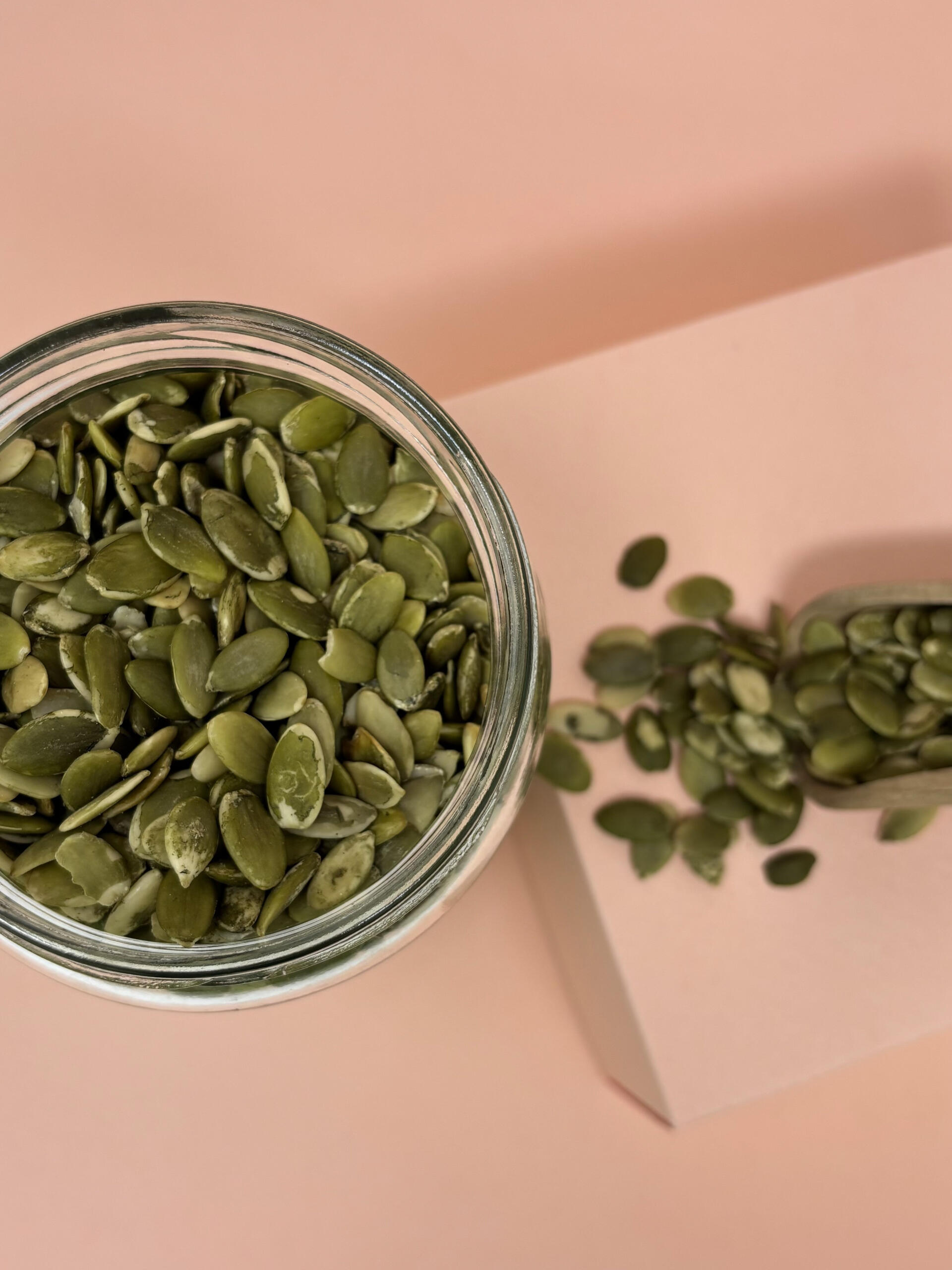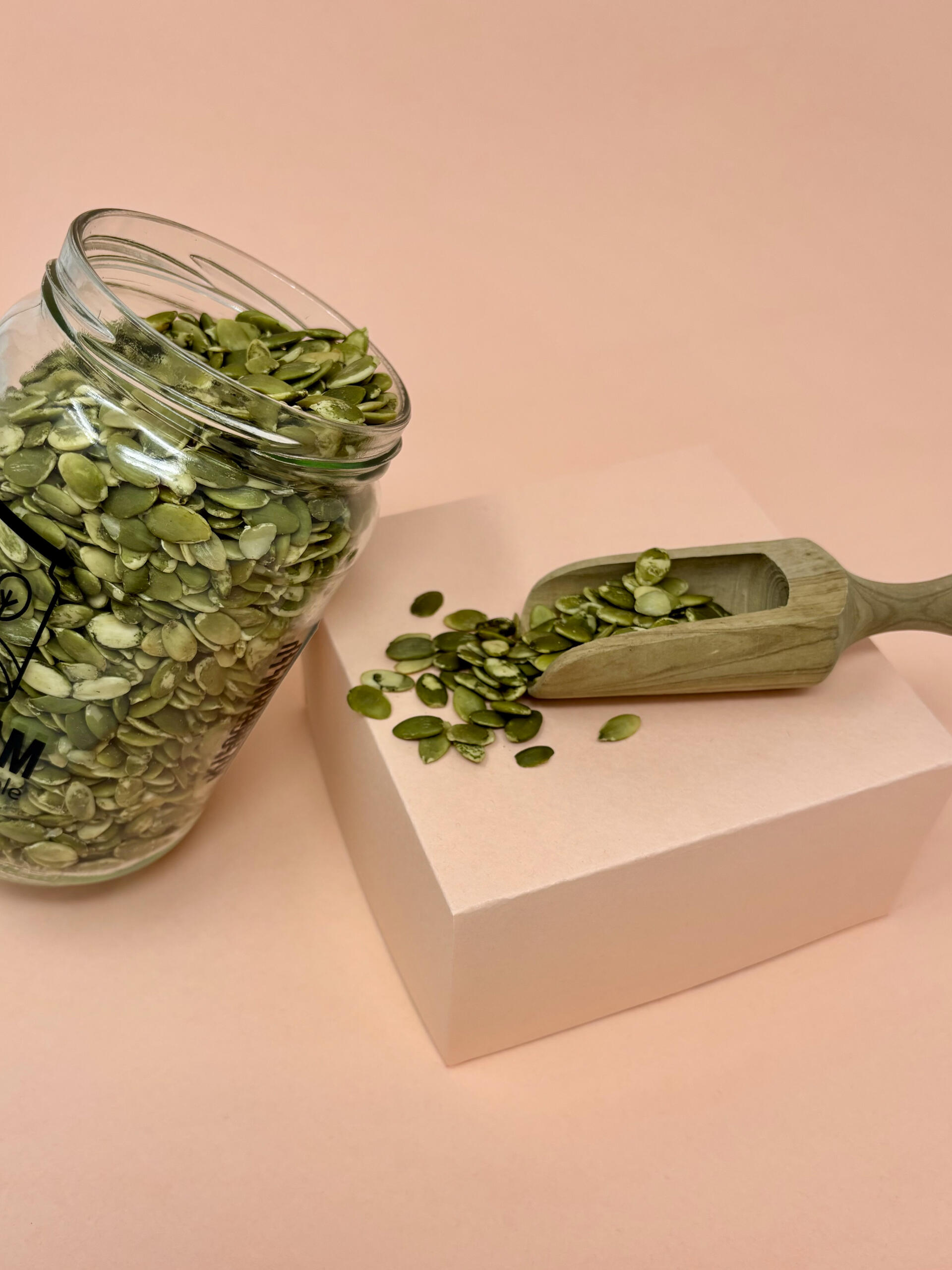 Graines de courge riches en nutriments, à ajouter dans salades, yaourts ou pâtisseries pour un apport sain et gourmand.