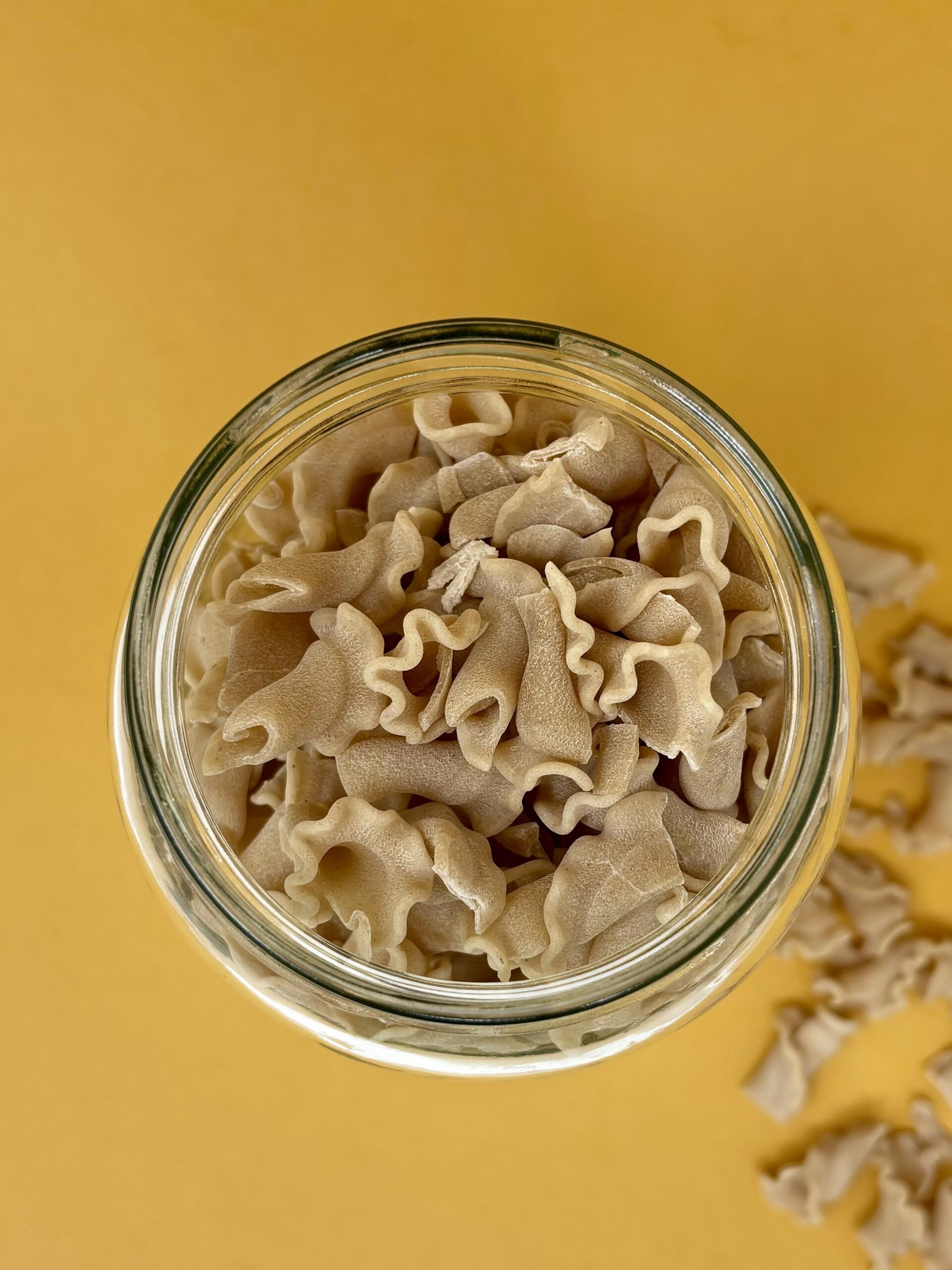 Pâtes artisanales riches en vitamines, minéraux, fibres et protéines, offrant un goût légèrement noisette pour des repas sains et équilibrés.