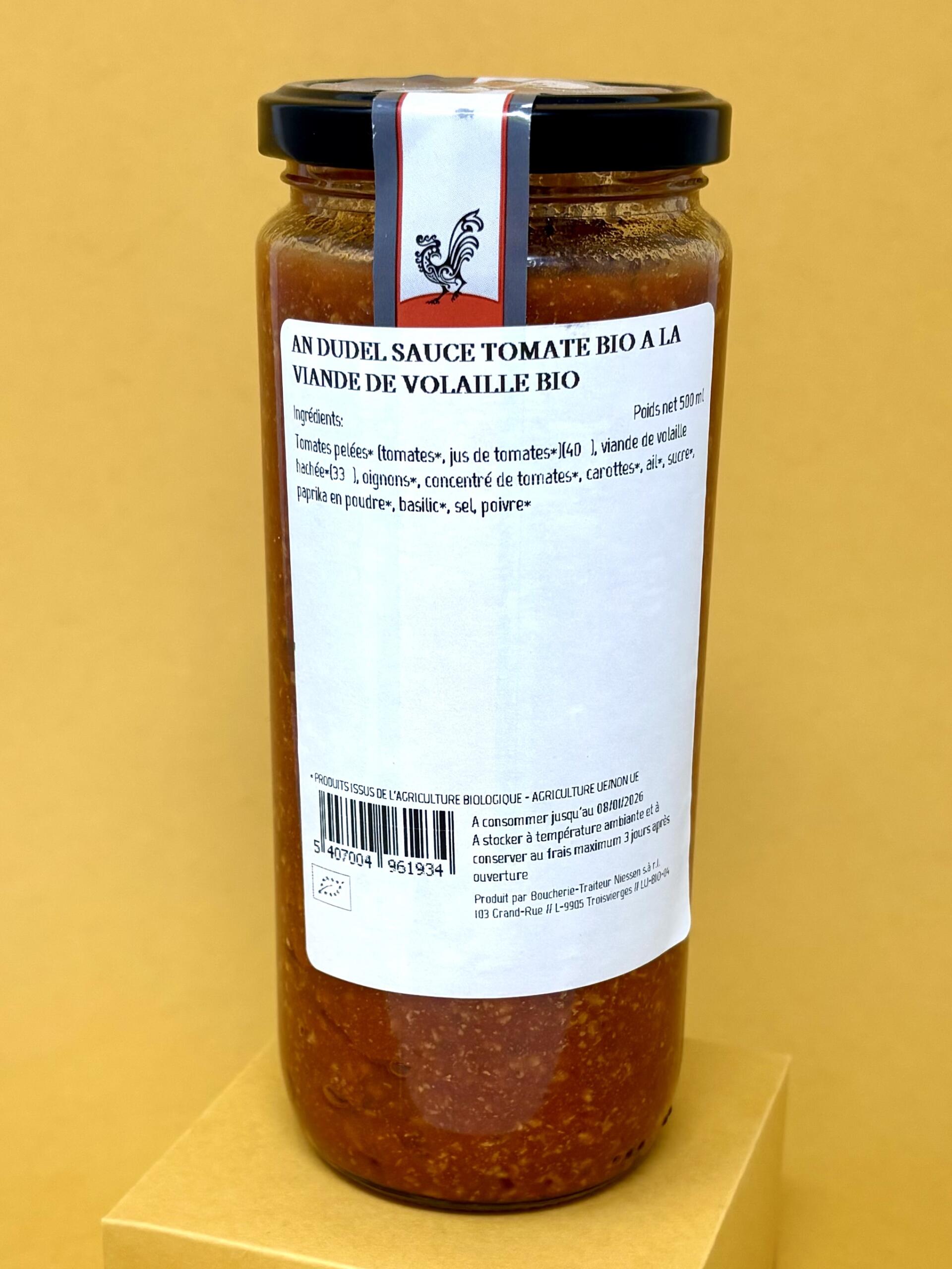 Cette sauce savoureuse associe des tomates mûries au soleil et de la viande de volaille biologique élevée localement, offrant une expérience culinaire authentique. Idéale pour accompagner pâtes, polenta ou légumes, elle apporte une touche gourmande à vos plats.