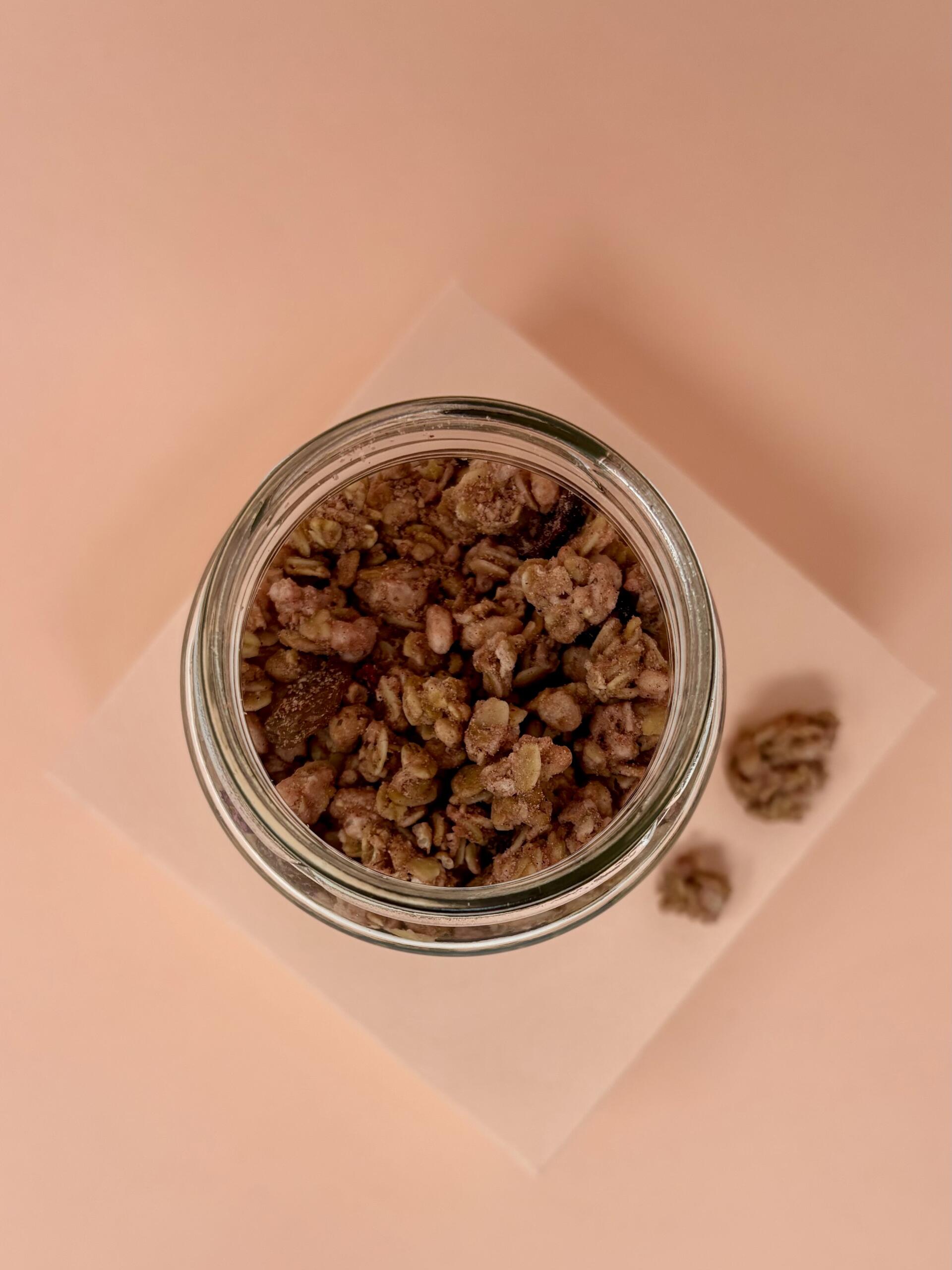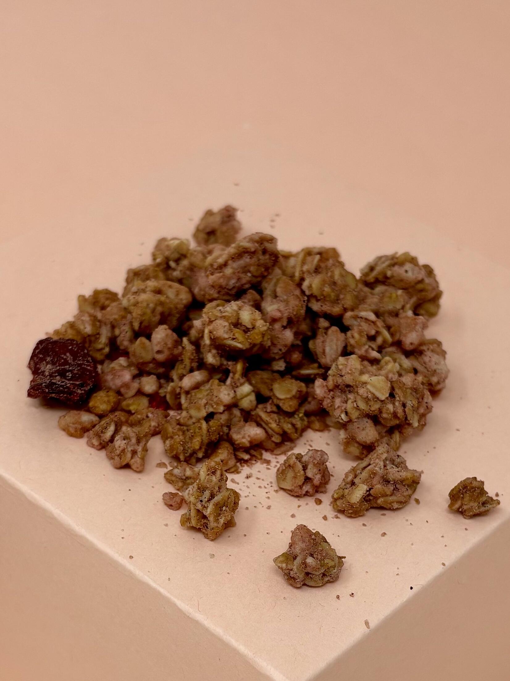 Muesli croustillant fruits rouges avec framboises et myrtilles lyophilisées pour petit-déjeuner énergisant.