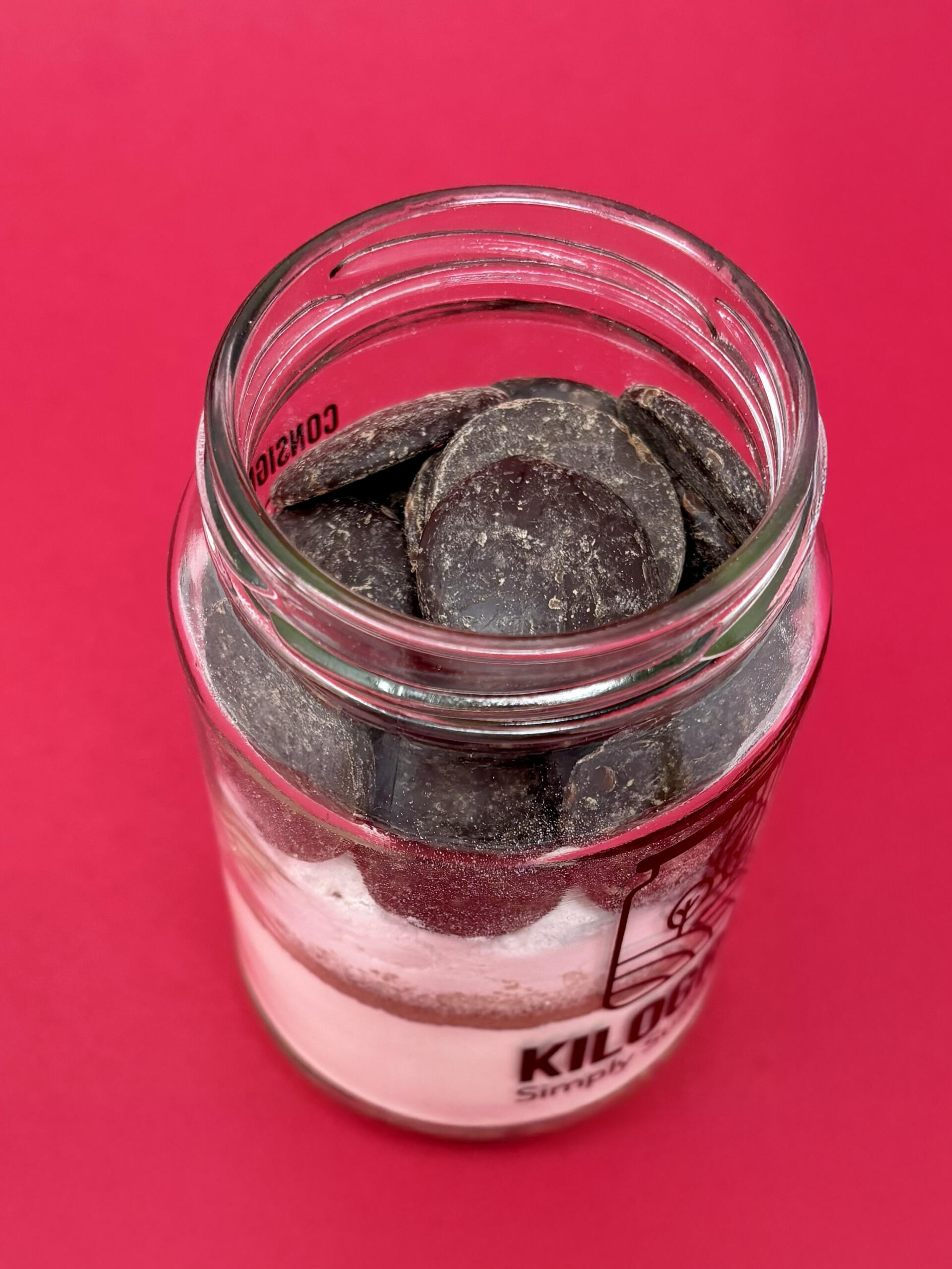 Préchauffez le four à 160°C. Beurrez légèrement une plaque de cuisson. Faites fondre le chocolat dans un bol au bain‑marie. Remuez jusqu’à obtenir une texture lisse et laissez refroidir. Mélangez le beurre avec le chocolat fondu. Ajoutez le mélange Kilogram et remuez délicatement. Étalez la pâte et découpez environ 20 cookies à l’aide d’un emporte‑pièce. Déposez-les sur la plaque.
