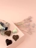 Pralinés en forme de coeur (chocolat blanc, lait et noir)