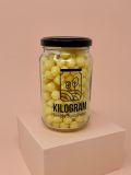 Boules de maïs enrobées de miel, fabriquées en Italie, alliant simplicité et plaisir gourmand.