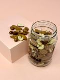 Ce mélange bio de fruits à coque (amandes, noisettes, noix de cajou, noix, etc.) offre une alternative savoureuse au traditionnel Studentenfutter, sans raisins secs. Idéal pour les amateurs de croquant et d'en-cas riches en énergie, sans le goût sucré des fruits secs. Amandes, noix de cajou, cerneaux de noix et noisettes composent ce délicieux mélange de fruits secs.
