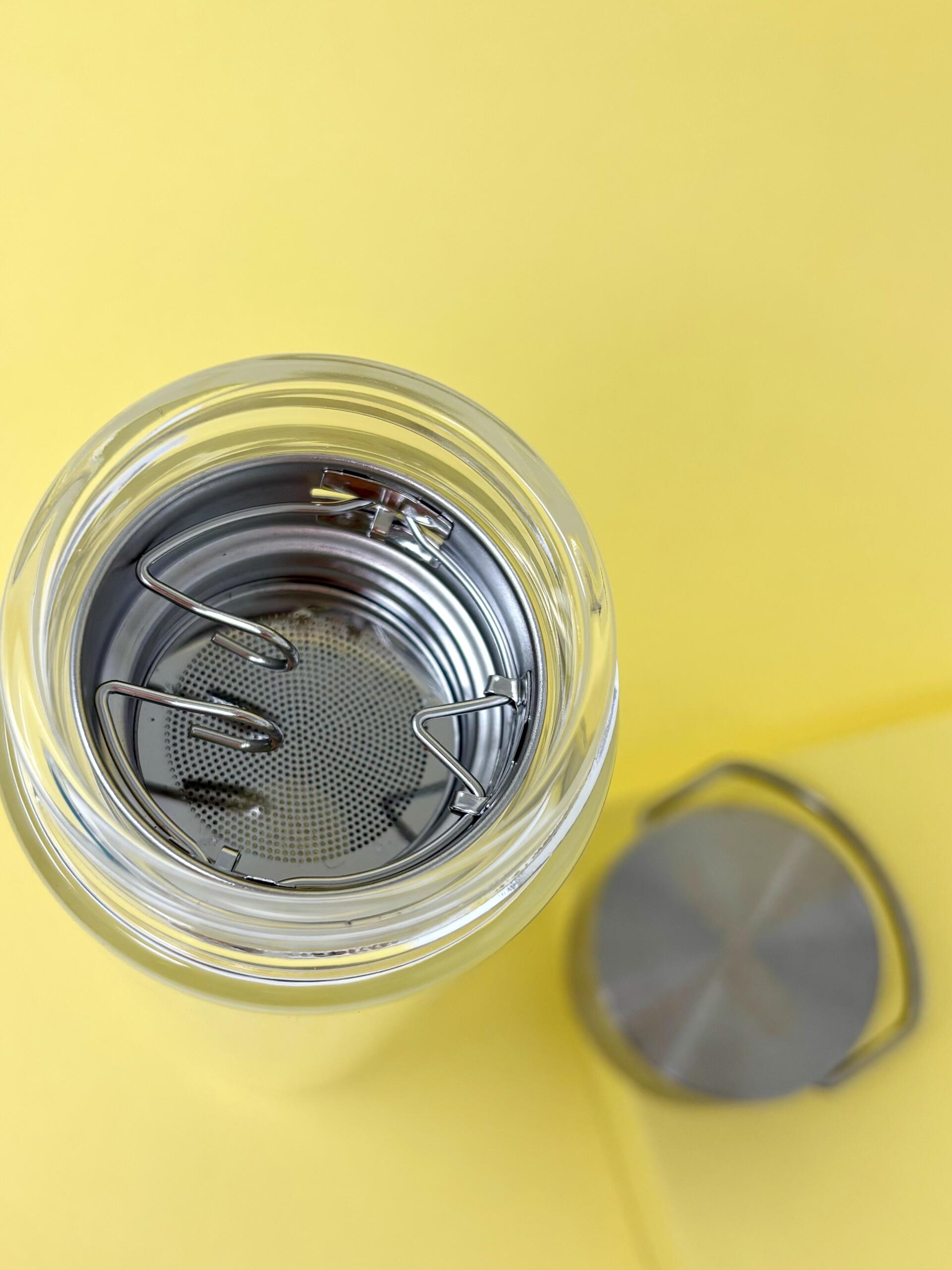 Verre borosilicate doublé paroi, Filtre en acier inoxydablé (2 pièces : court + long), Couvercle vissé en inox