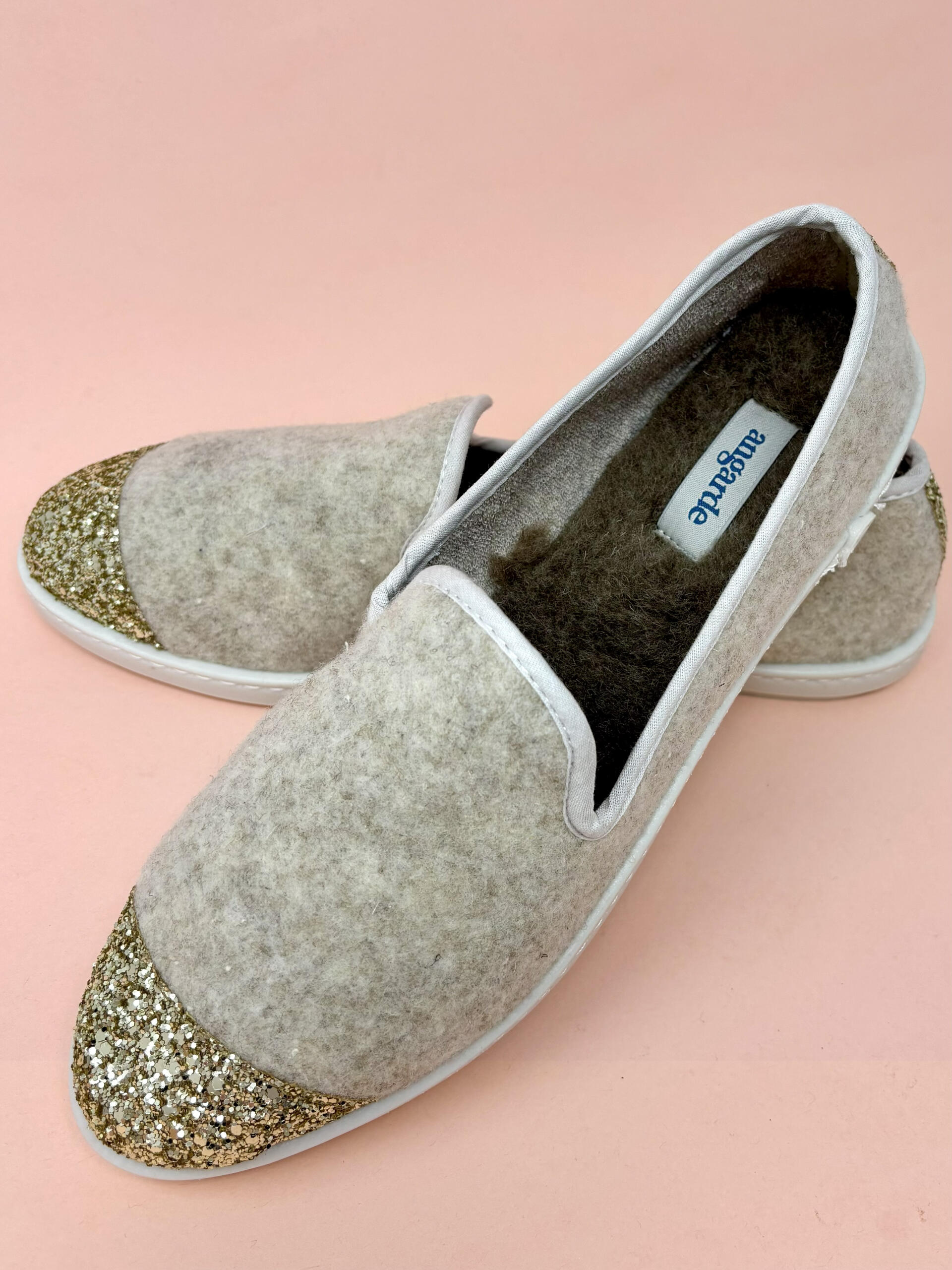 Chaussons en laine recyclée Beige Sparkling (femme)